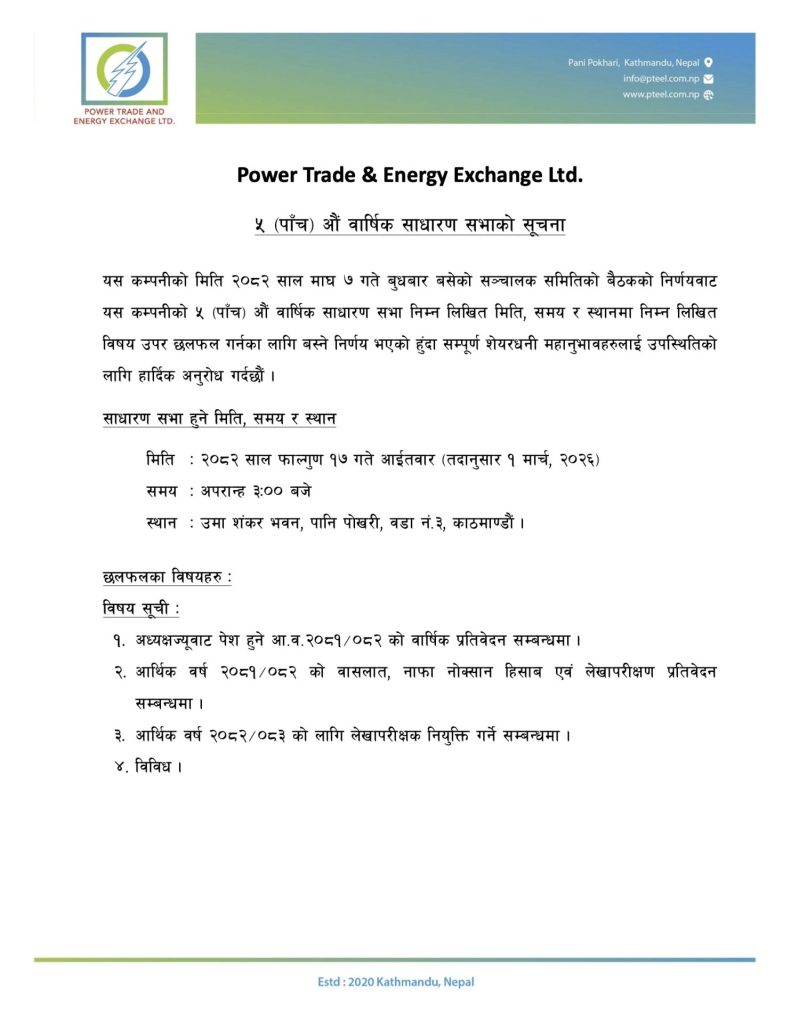 To advocate for adequate transmission line network inside Nepal for cross border transmission line, Since adequate network of transmission line network is a must for wheeling of power, PTEEL will consistently advocate for expanded network of transmission line with adequate capacity.